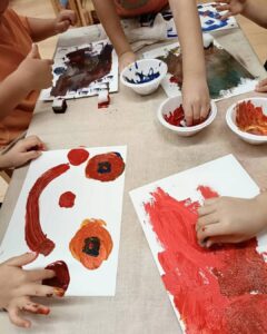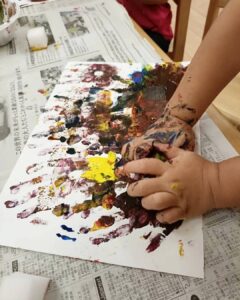 色の変化にワクワクしながら、自分の世界を思いきり表現する子どもたち。